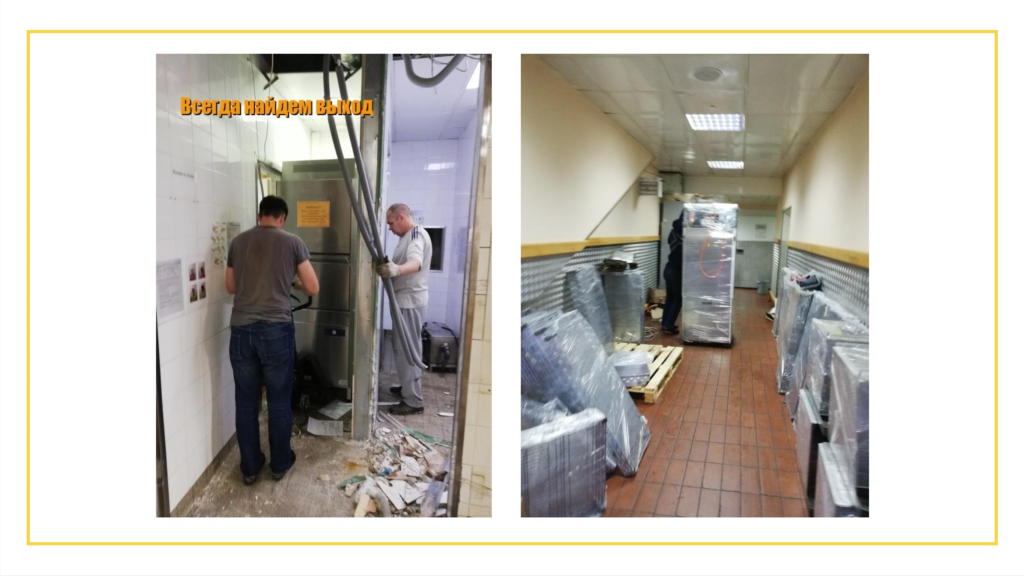 Сложность была в том, что было много тяжелых плит и холодильников + нужны были специалисты по демонтажу конструкций+ все это перевезти!!!